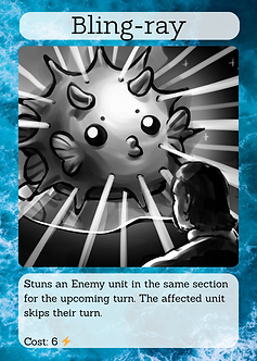 "Seatyms" is a recent project made at the end of 2025. It's a board game made by a team of 4 people. I took part in both drawing and designing visual components for this game, as well as some game design and narrative aspects. For this project, I made 11 different card designs based on the descriptions of the monsters and their powers. These were done in a monotone color scheme, taking into consideration the possibility of printing them out in black and white.